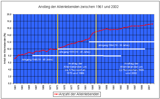 Anstieg der Einpersonenhaushalte in den alten Bundesländern. Zwischen 1973